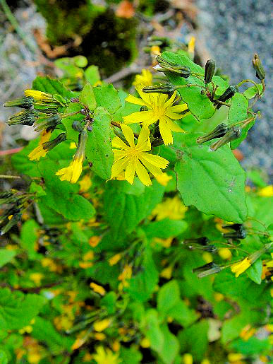秋から初冬にかけてニガナに似た黄色 の小頭花を多数開く。