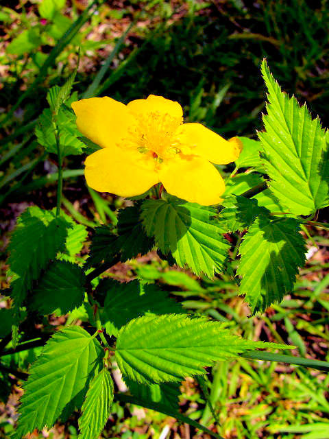 季節がら、男山でヤマブキの花が目についたので写真を撮ったのだが ・・・ 八重のものであった。 それで気がついた。 八重があるのなら一重もあるだろうと思って、かって撮り置きの写真を見直すことにしたのである。 やはり思ったとおり