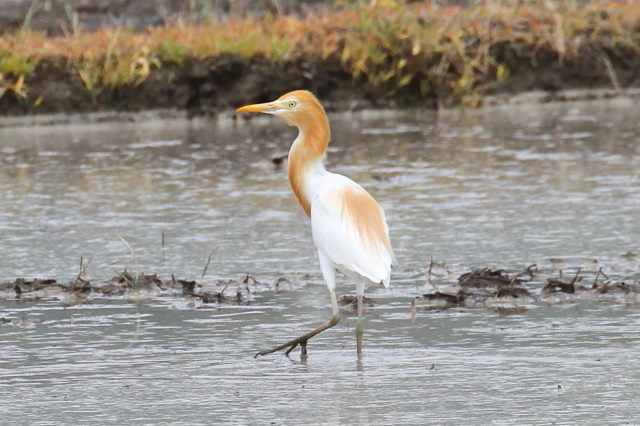 アマサギ (亜麻鷺) ペリカン目 Pelecaniformes サギ科 Ardeidae [学名] Bubulcus ibis [英名] Cattle Egret [夏鳥 (八幡市)] 全長(L) = 50 cm 雌雄同色 |
