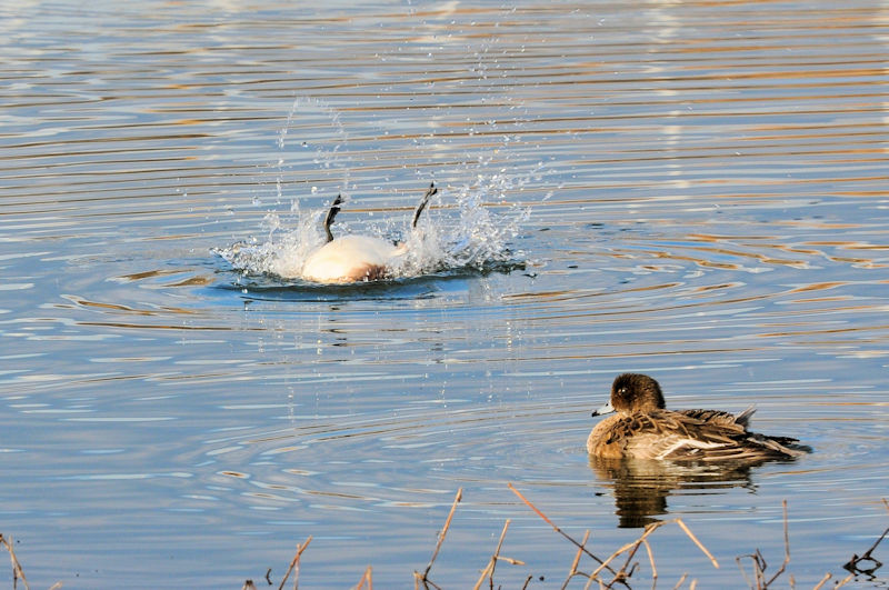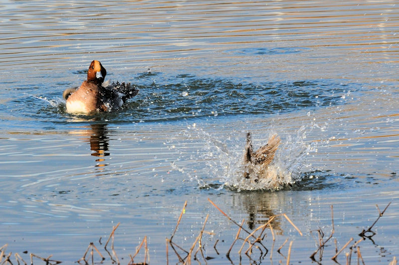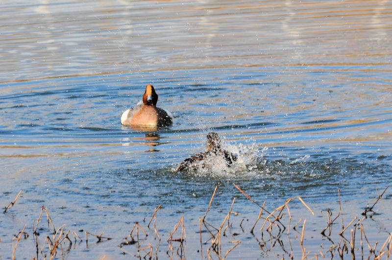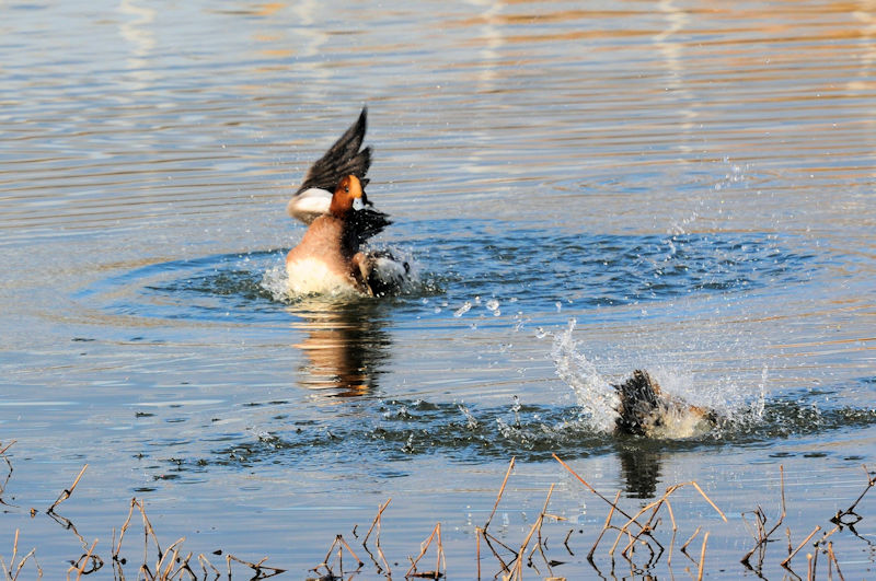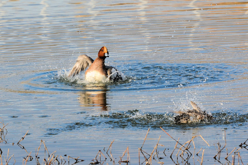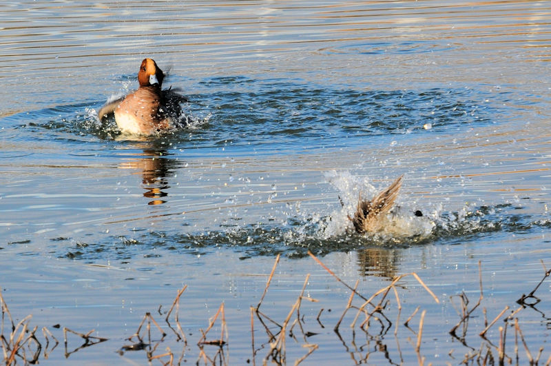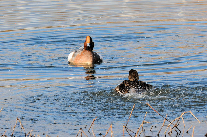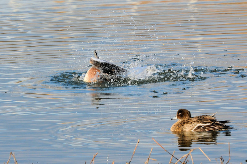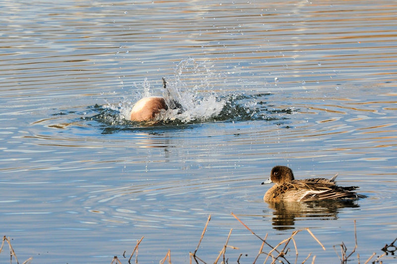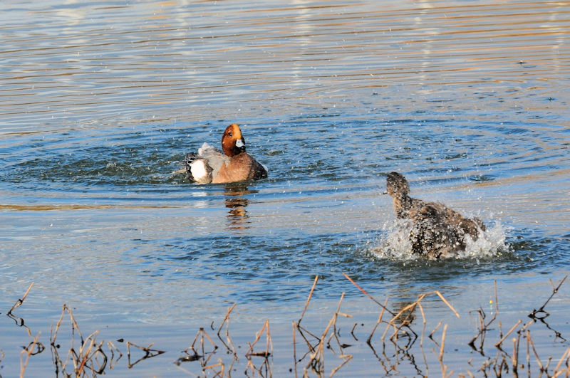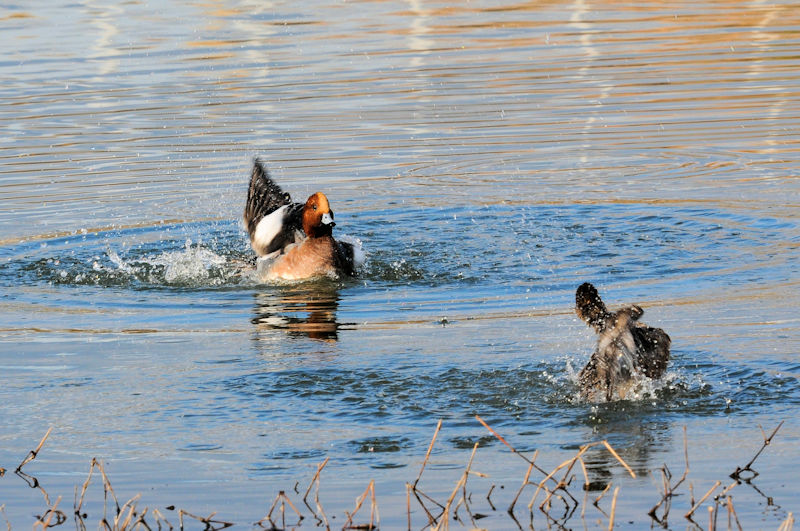 ・・・ ヒドリガモ夫婦で水浴び ・・・ |