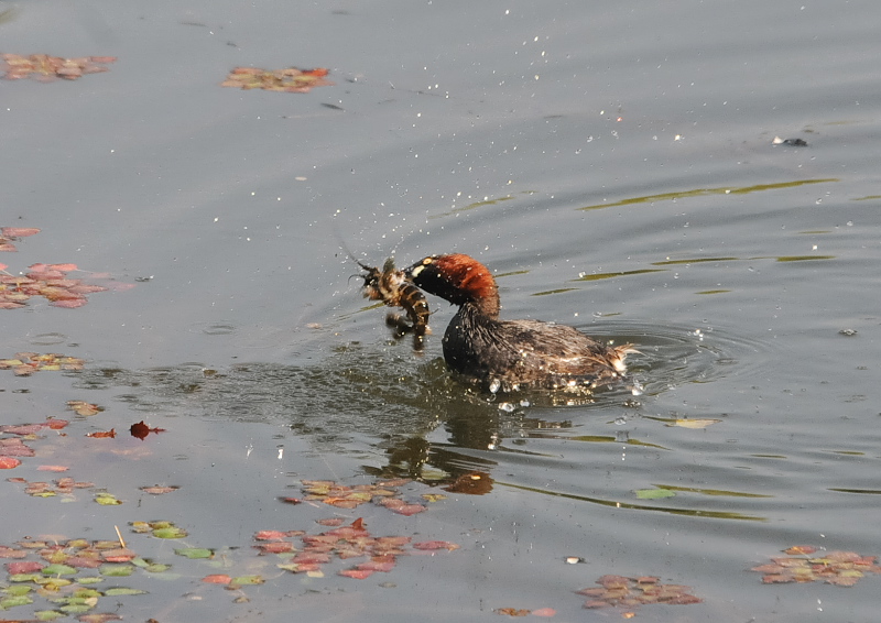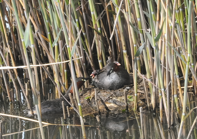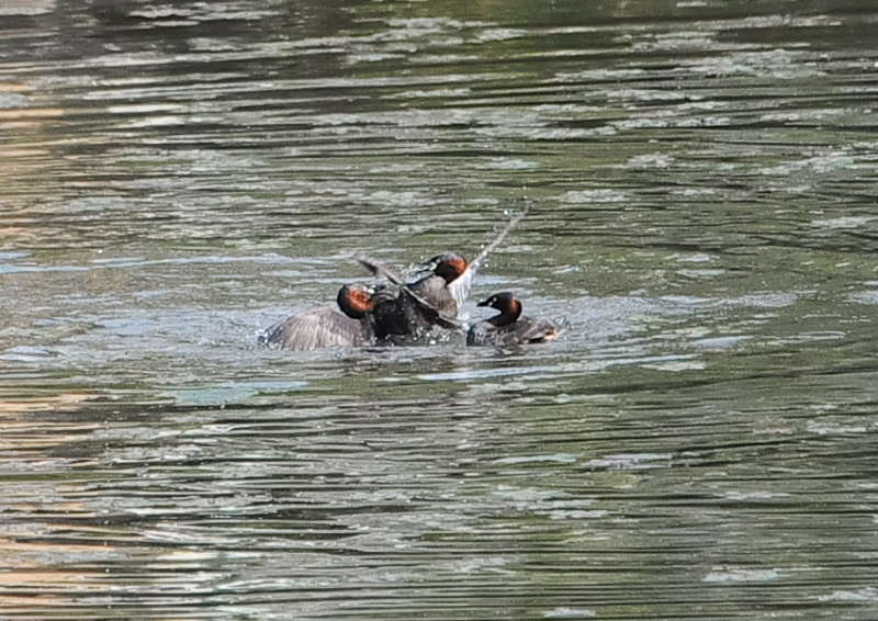 他のカイツブリが入るとメスも加わって撃退、縄張り意識が高いことが分かりました。