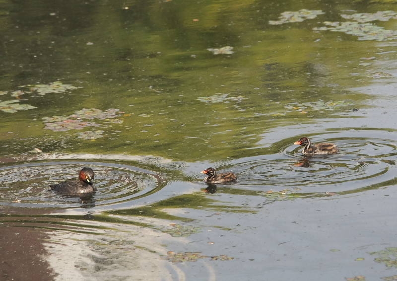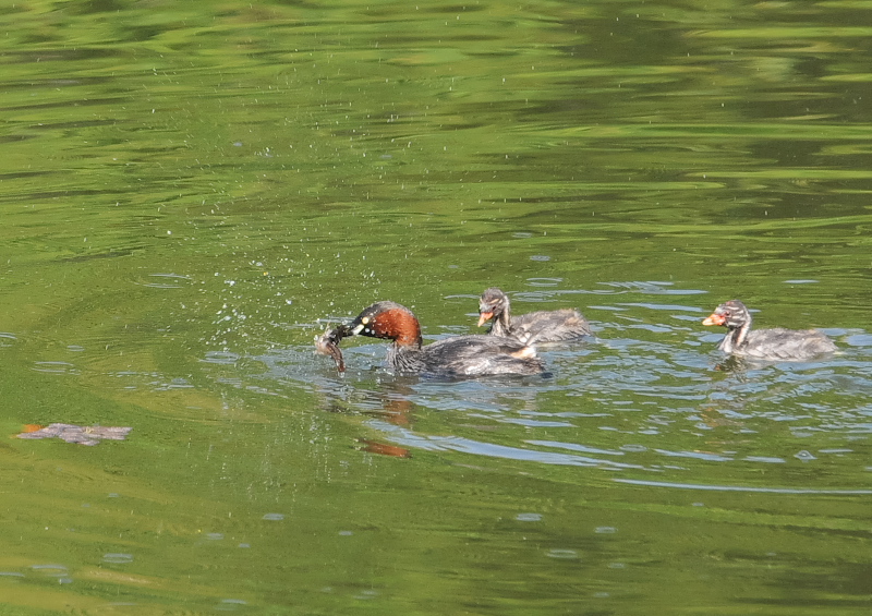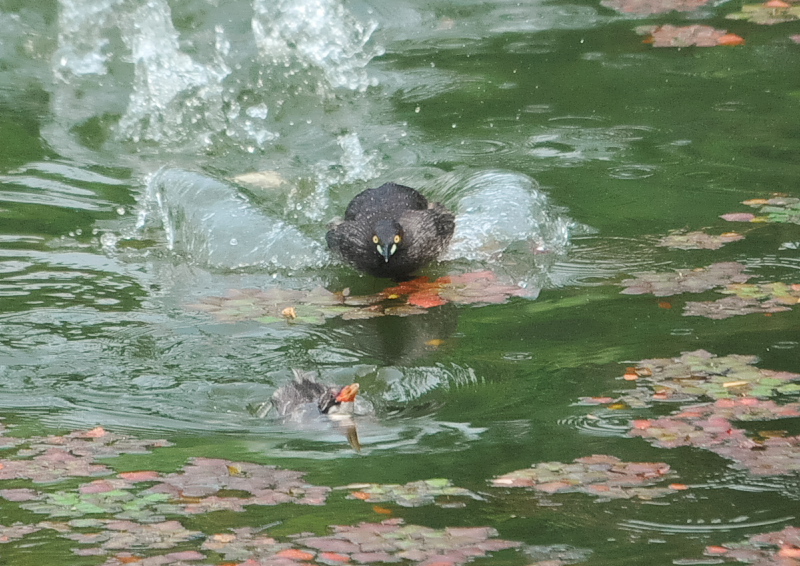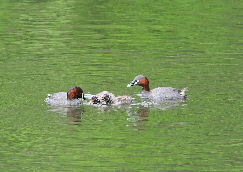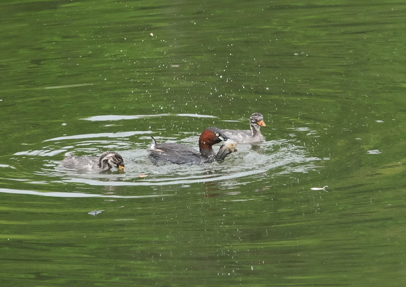 成長に合わせての餌さやりや、頭を沈めて潜りを促したり、突然追い回して独立をうながしたり、雌雄の子育て連携プレーは私達人間も見習いたいところです。