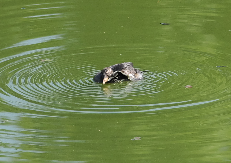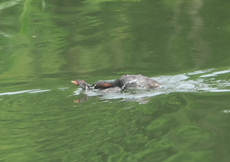 雛が小さい内は保温の為かおんぶして泳ぐ。