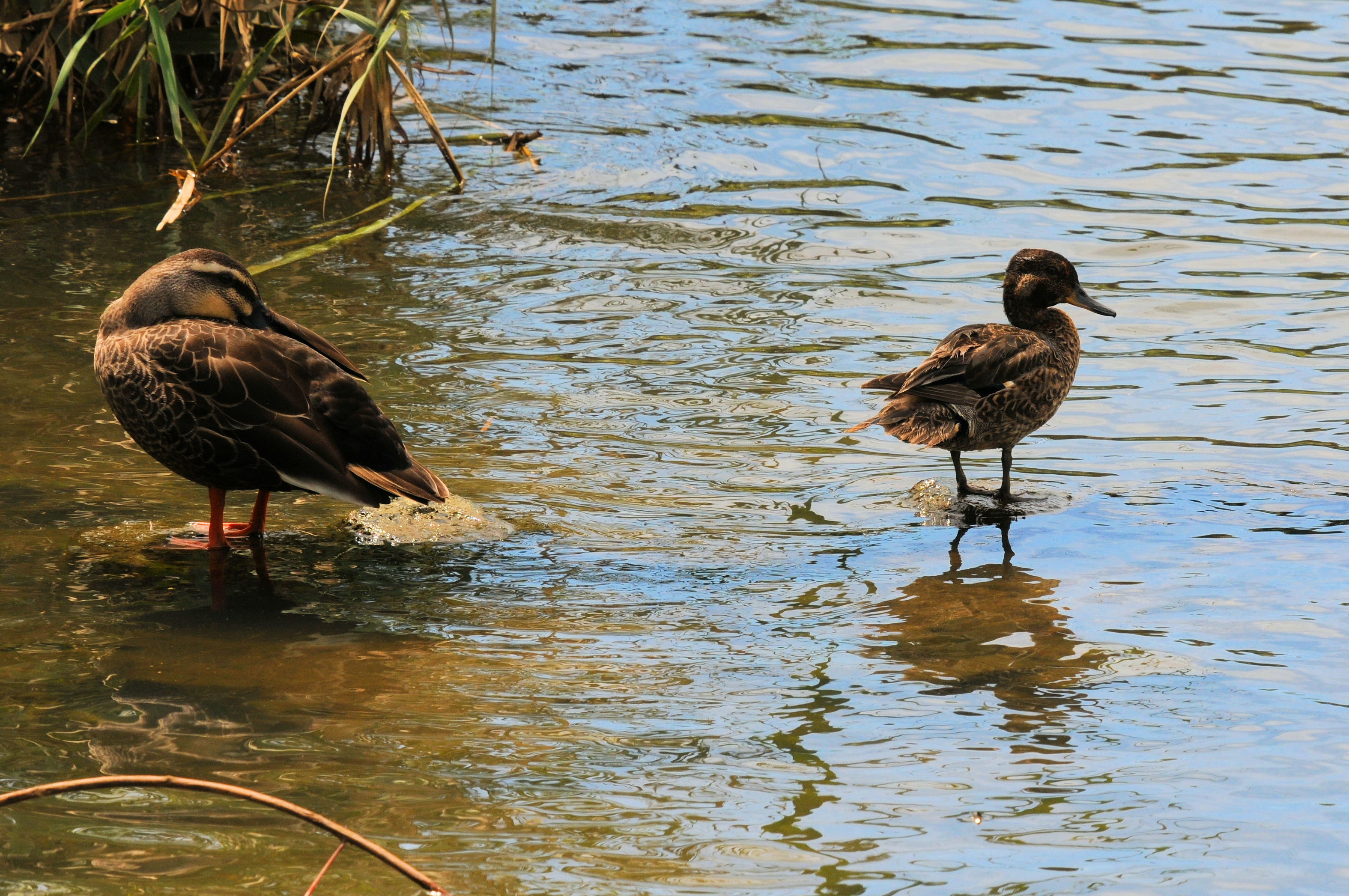 コガモとカルガモのツーショット 大谷川 八幡市 2022/09/07 Photo by Kohyuh