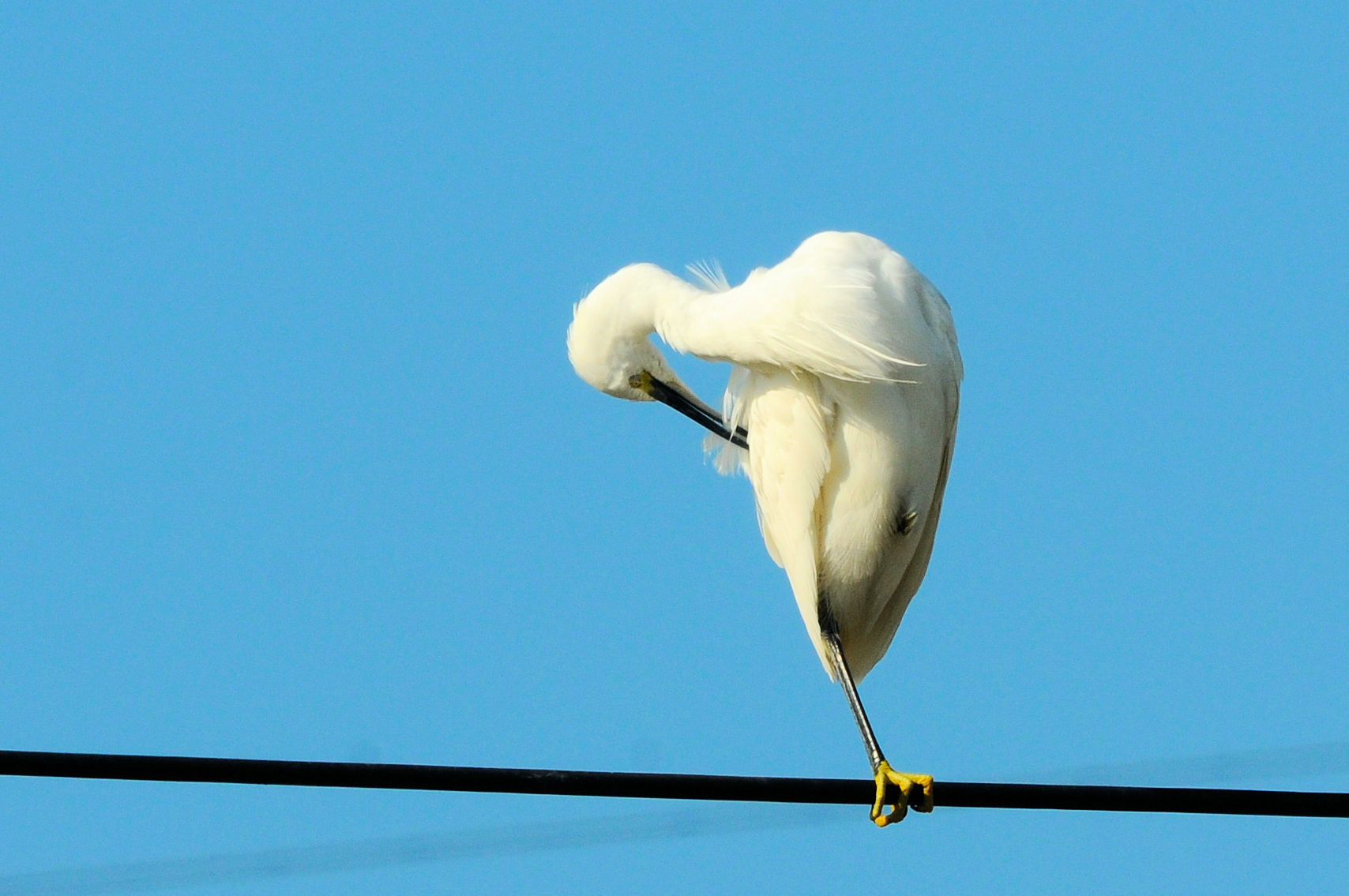 一本足立ちではあるががっしりと電線を “鷲掴み わしずかみ” してる。彼らにとってはリラックスした立ち姿であり、このまま眠り込んでも緩むことはない。例え、この体勢がふらついたとしても、握力は自動的に締まるように働く腱鞘構造になっているのである。鳥類の鷲掴みとはそういうもんだ。