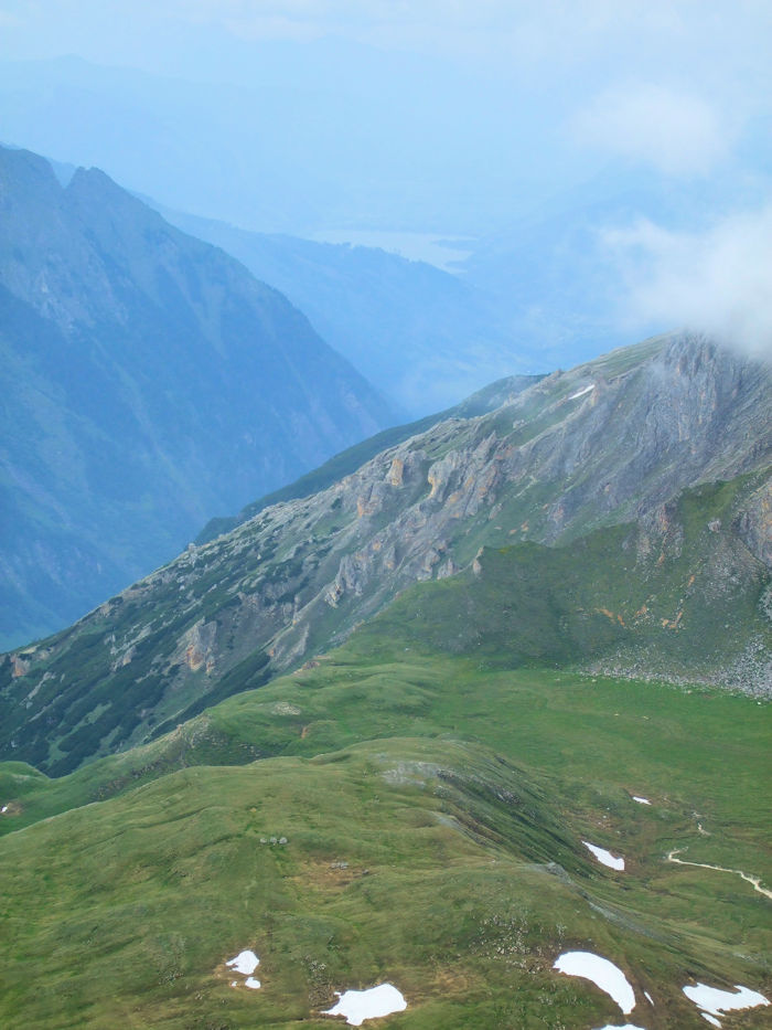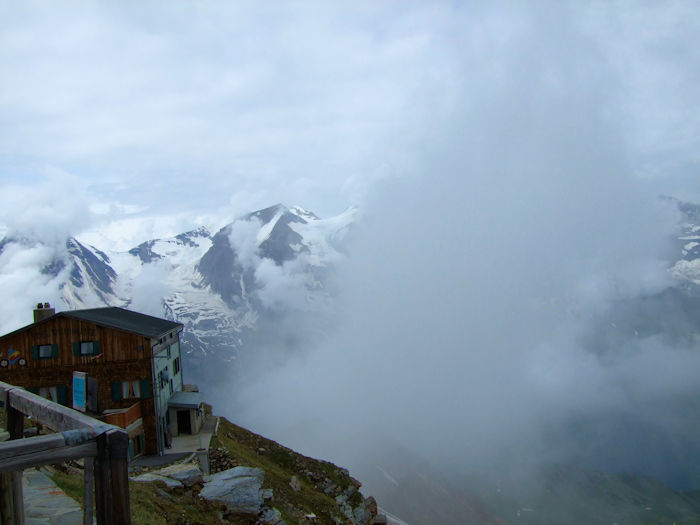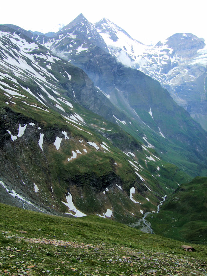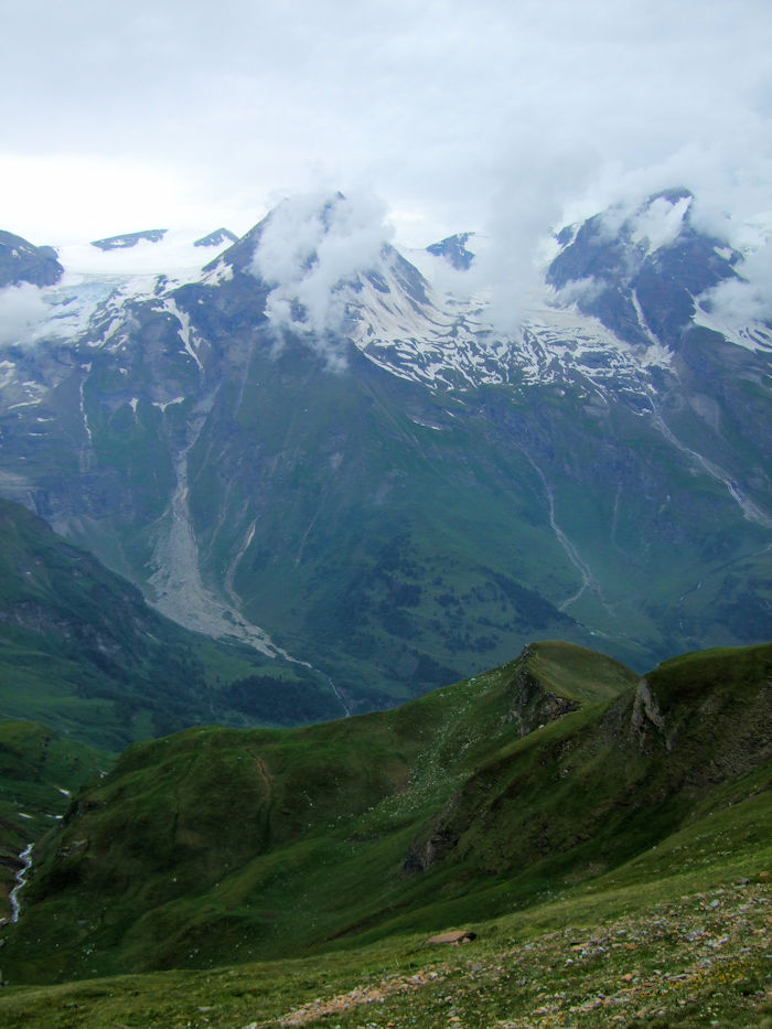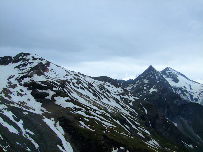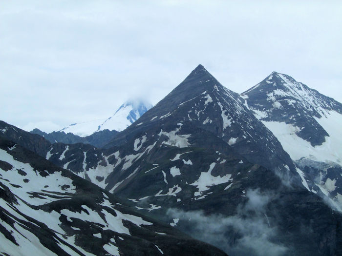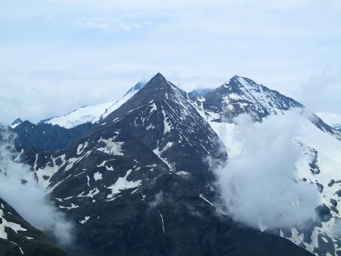 そしてまた、本当に見たいのは、この手前に見える二つのピークのどちらでもない。そのはるか先にある、写真ではよく分からないピークが、グロスグロックナー 3,798m である。