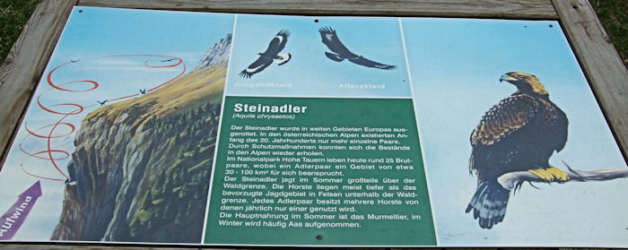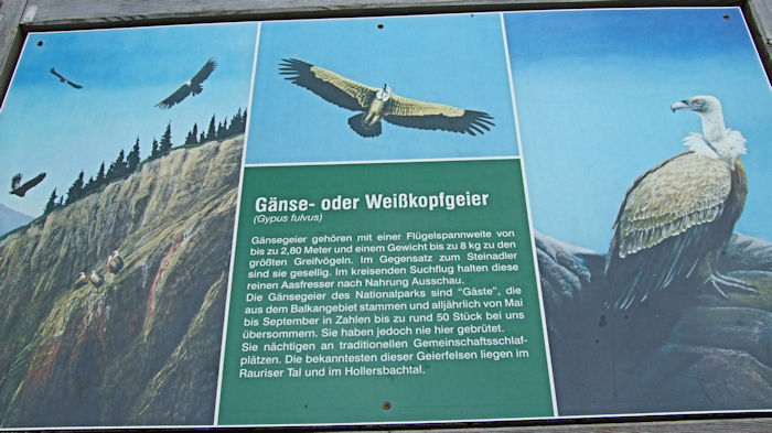 また、写真付き説明板によれば、シロエリハゲワシ (Gyps fulvus)、ヒゲワシ (Gypaetus barbatus) や イヌワシ (Aquila chrysaetos) を観ることができるとのこと。ワシタカを観察するのなら、なるほど、キャンピングカーがいたのもうなづける。もちろん、こちらはそんな時間的な余裕もないので直ぐに出発した。