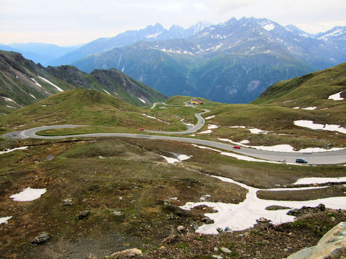 帰国後にわかったことであるが、ここがホッホトーア Hochtor 2,504m というところで、この峠道の最高地点 2,504m であったらしい。そういうことも知らないまま、この峠道に来たわけである。なるほど絶景であった。