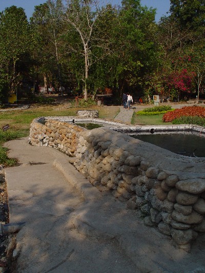 ここに、石造りで大きく 「サンカムペーン温泉 Sankamphaeng Hot Spring」 と記されたモニュメントがあったから、これが源泉であろう。