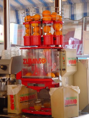 私も試せばよかった。あとにも先にも、ホテルで自動絞り機があったのは、ここだけであったから。 ただ、スペインでは、もっと高性能のオレンジ自動絞り機をバール等でよく見かけたが・・・ <左上の写真参照>