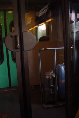 発車後しばらくして、鉄道警備隊員風の大の男 2人が見回りに来て、「あれはお前たちの荷物か?」 と指差して聞いてきた。