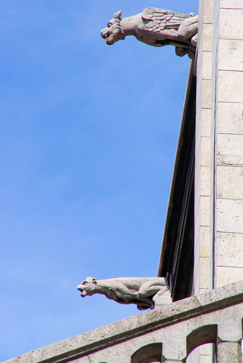 ガーゴイル gargoyle 主に寺院の屋根の雨水を流す樋 とい であると共に、怪物などを形どって邪悪なものを清浄化して外に流すといった意味合いもあるのだろう。 by Wikipedia より流用