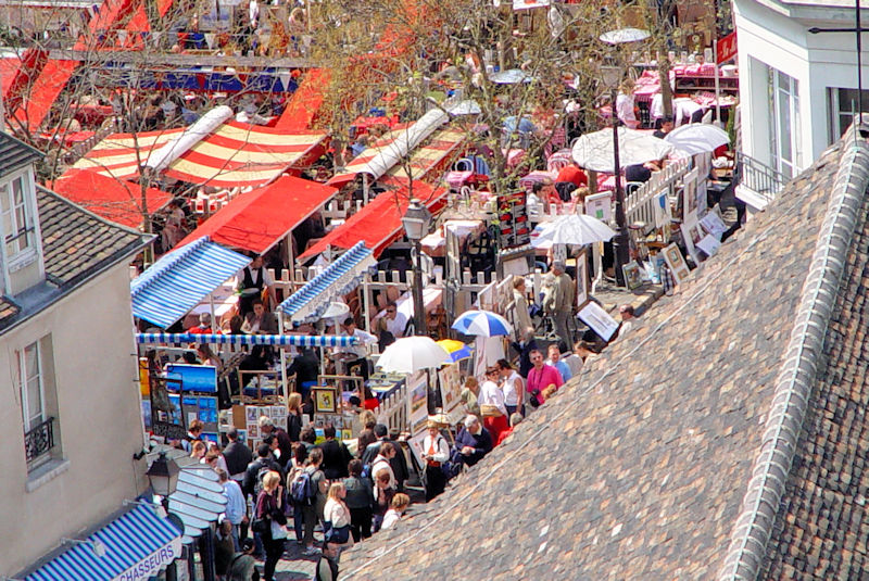 モンマルトル Montmartre モンマントルは、かつてのモジリアニのように画家を志す人達が今も多く暮らしている街という。 確かに、似顔絵描きの人も大勢いて、日本人の画家もいた。もちろん色々な絵も売られている。ウィンドウがあるわけではないが、ウィンドウ ショッピングをして回るだけで楽しいものである。