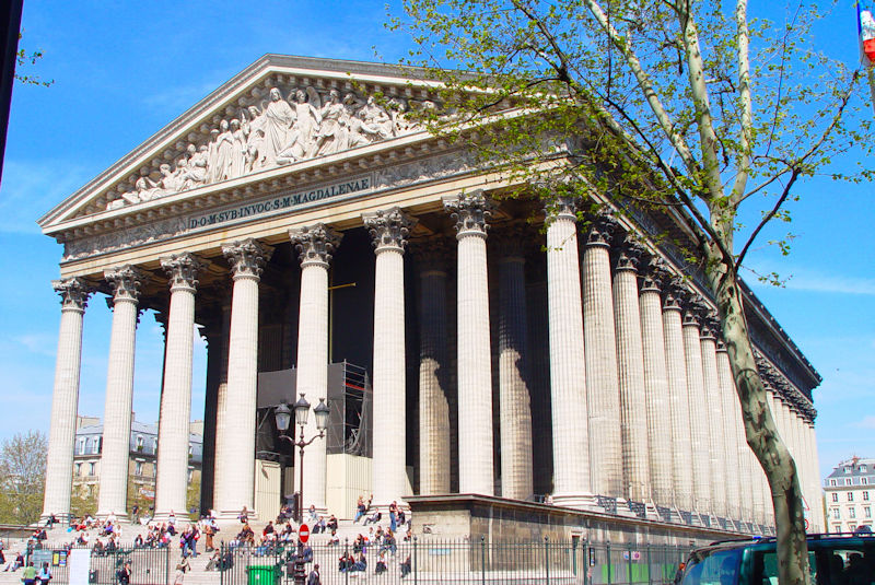 マドレーヌ教会は、ギリシャ神殿風であるが、18世紀から19世紀にかけて建てられたものという。一教会にしては立派過ぎる。どうやら議会場とか裁判所とかに利用されたあとに、やっと教会になった歴史があるそうである。