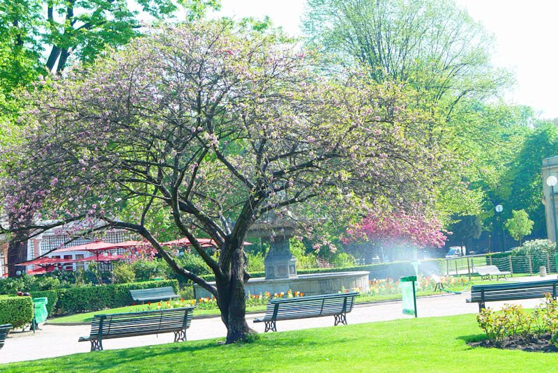 鳥観 とりみ 2004/04/16 シャンゼリゼ Av. Champs-Elysees を歩いていると小さな公園があった。八重桜であろうか、ピンクの花が満開の木があった。大きな柳の木もあった。その近くのベンチでは、お年寄りが休んでいたり、また、子供を遊ばせている母親もいた。観光客は誰もいない、その地域の公園であろう。