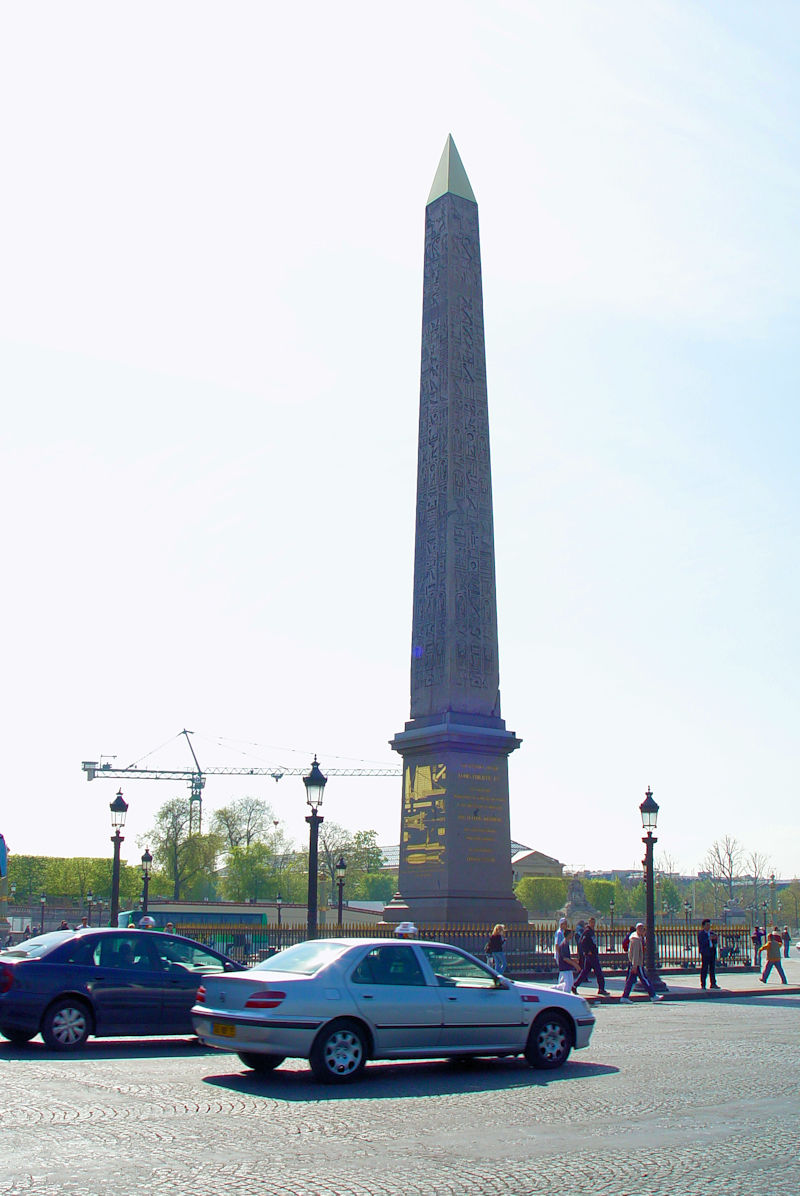 凱旋門を背に、真っ直ぐ歩けば、このコンコルド広場 Pl. de la Concorde に至る。シャンゼリゼを歩いていると、この広場に立つオベリスクが、否が応でも眼に入る。フランスのシャンポリオンがロゼッタストーンを解読した功績により、1833年 エジプトから贈られたルクソール神殿のオベリスクである。 古さを感じさせない、今造られたように見えるが、レプリカでないとしたら驚きである。また、こんな貴重なものを風雨に晒していいものだろうか。倒れでもしたら、それこそ取り返しがつかない。ところが、私のそんな心配など、どこ吹く風と堂々と建っていた。