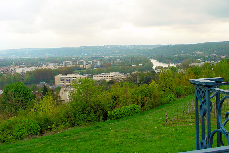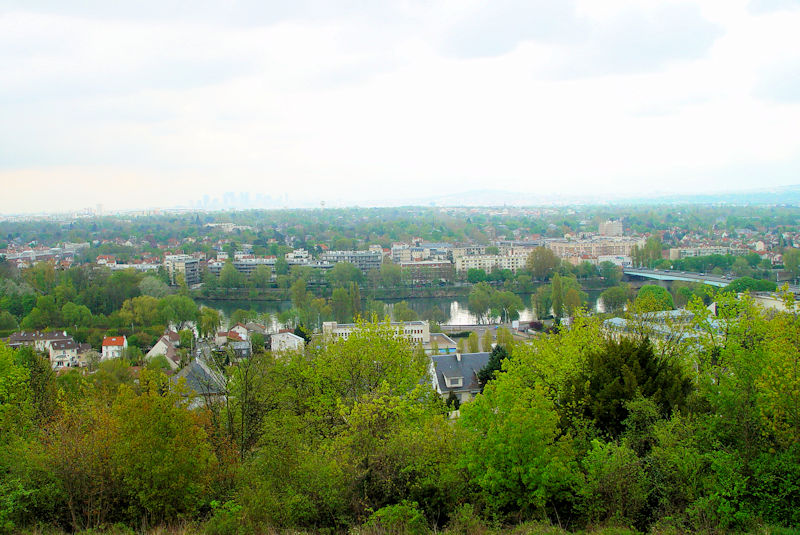 開けた方へ進むと、やがて崖っぷちというほどのものではないが、眼下には川が流れていて、おそらくセーヌ川であろう、その両側に拡がる街並みが、一望のもとに見下ろせるテラスになっている。