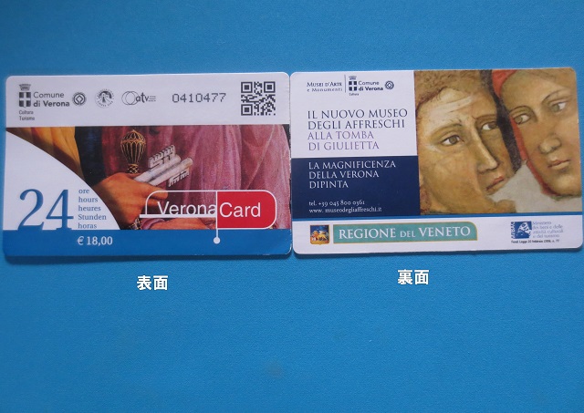 ヴェローナ・カードVerona Card(24時間)の外観。最初に使った時間から24時間有効になる。今回は購入時に『今から使う?』と応えた。