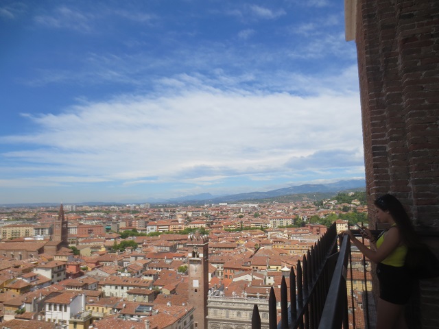 ランベルティの塔Torre dei Lambertiの上から眺めたヴェローナ市街の様子。エレベータで上がれる。