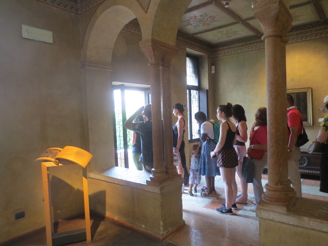 玄関に入って外を眺めるとジュリエットの像の前で記念撮影する人が引きも切らない。