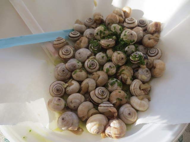 楊枝で簡単に貝の身を取り出せる。小さくて面倒なようだが・・・これがチビリチビリと飲むワインによく合うのだ。また、ニンニク入りのオリーブオイルのソースが貝にはよく合うのだ。