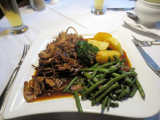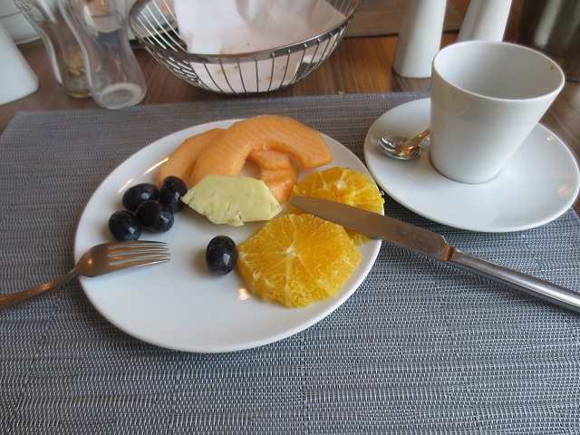 ハルは昔、岩塩の産地として大いに栄えた。ハルの地名は、ギリシャ語の「ハリス」=「塩」に由来しているという。食後のフルーツも十分だ。
