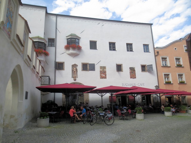 “Rathaus Café” 文字が見える.。” Rathaus” はドイツ語で市庁舎のこと。
